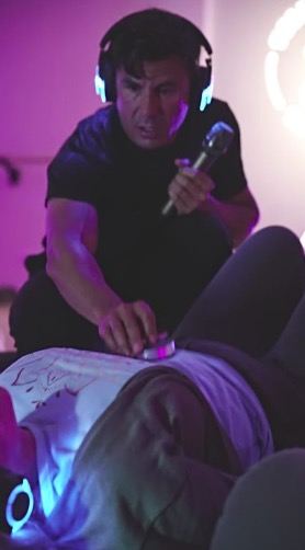 * Vibración y Frecuencias Inmersivas: Utilizamos el sonido como una herramienta física para reducir los niveles de cortisol y sincronizar las ondas cerebrales del grupo.